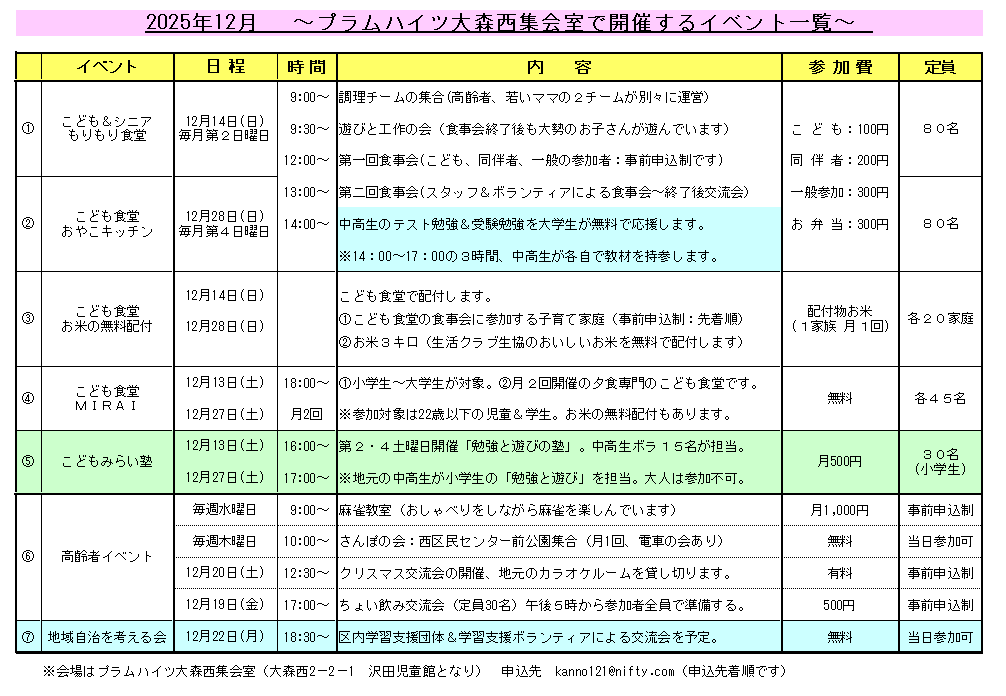 - 2025年12月~プラムハイツ大森西集会室で開催するイベント一覧~